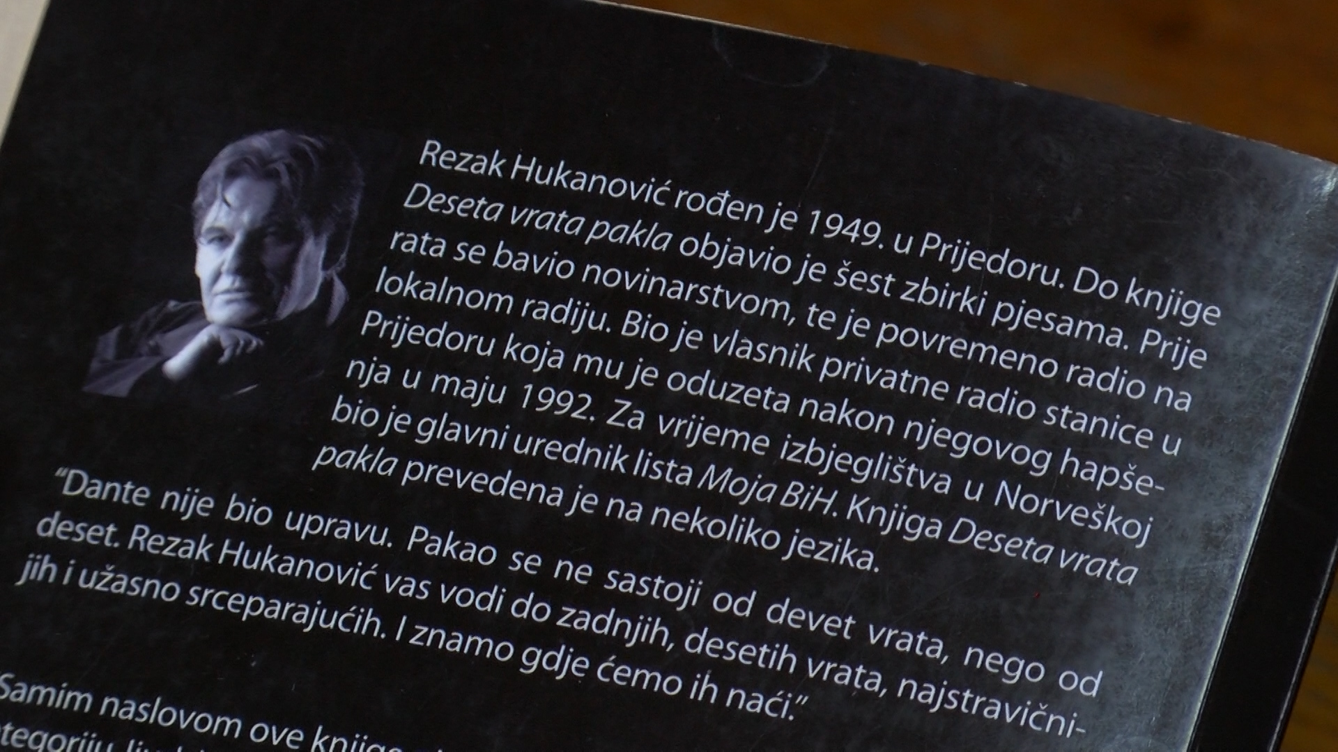 Inače, Rezak Hukanović, novinar i publicista rođen je 1949. godine. Redovni je član Društva pisaca Bosne i Hercegovine i do sada je objavio desetak knjiga, među kojima je i “Deseta vrata pakla”. Početkom agresije na Republiku Bosnu i Hercegovinu prinudno je zatočen te je na svojim leđima osjetio strahote logora Omarska i Manjača.