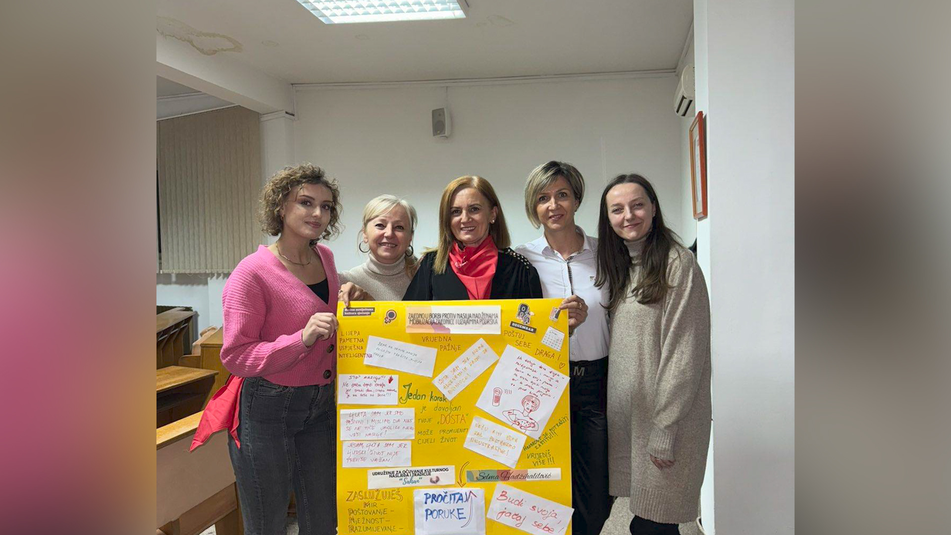 Sinoć je u velikoj sali Općine Vogošća u organizaciji udruženja “Sahan” održana uspješna i veoma interaktivna sesija u kojoj su učesnici zajedno pokazali da je zajedništvo, mobilizacija zajednice i uzajamna podrška temelj borbe protiv nasilja. Brojne napisane poruke podrške i ohrabrenja su postavljene na pano–dokaz koliko je naša zajednica spremna dići glas i stati uz žene.