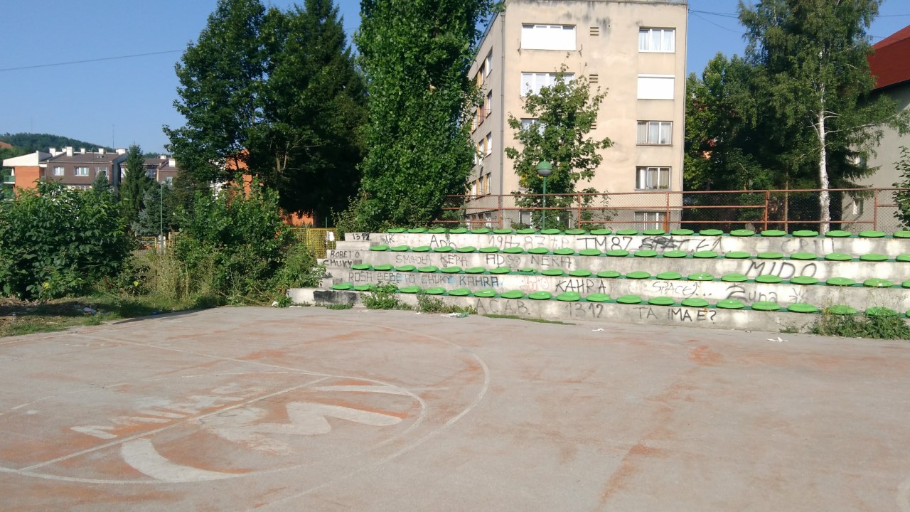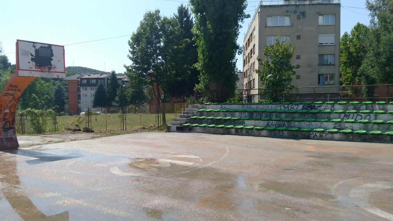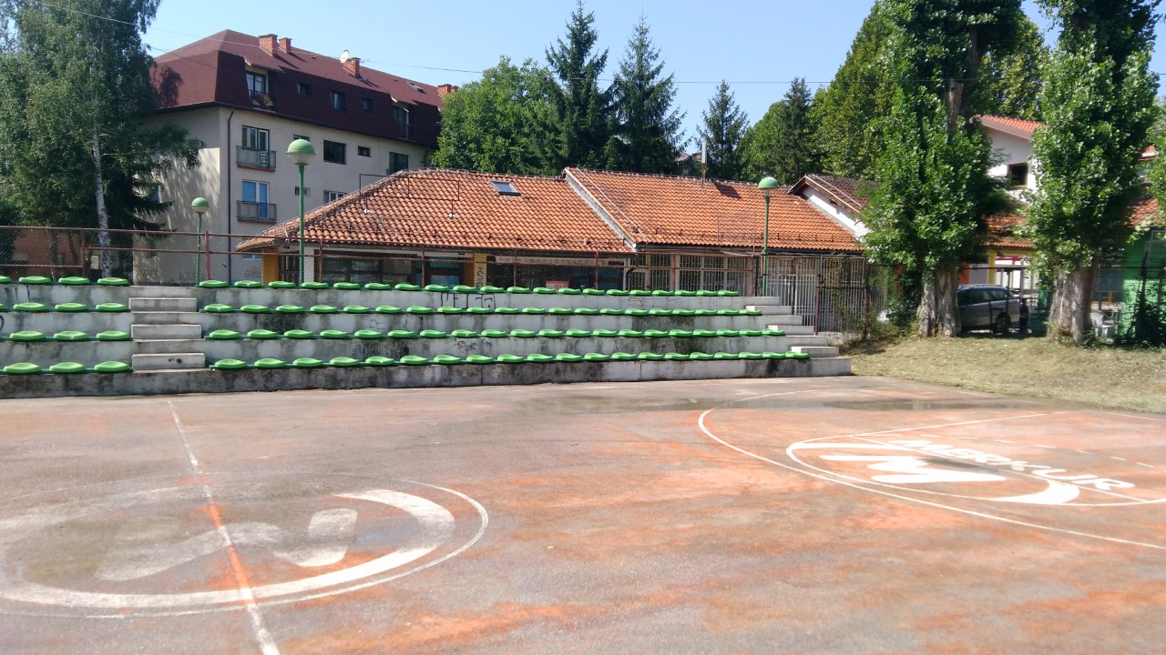 Kako se igralište nije održavalo od početka proljeća (kada je predato na upravljanje i održavanje KJKP “Park”) bilo je neophodno da se angažuje više lica koja su uz pomoć motorne pile i trimera uspjeli da urede površine iza koševa i dijelom tribine koje su također bile obrasle rastinjem.